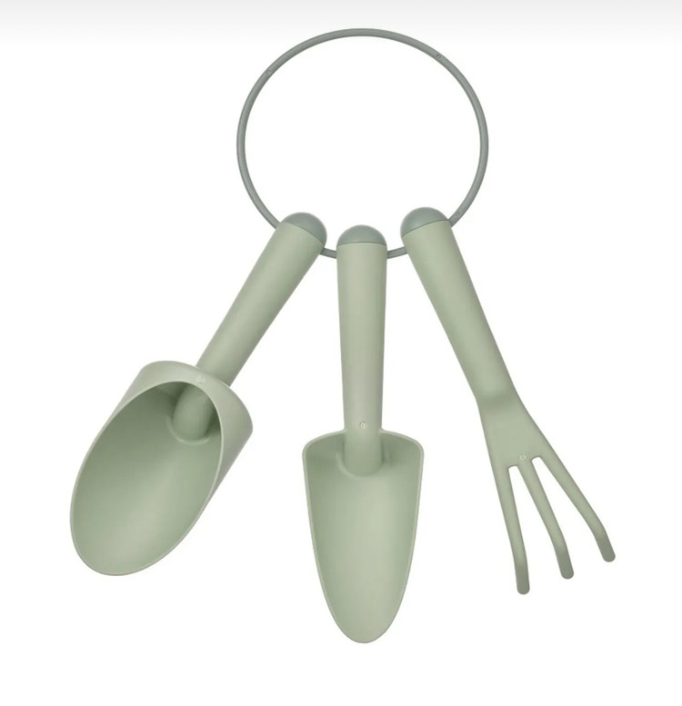 یک بیلچه بزرگ به طول ۲۲ cm یک بیلچه کوچک گلدان به طول ۲۲ cm یک شن کش به طول ۲۲ cm بهمراه قلاب نگهدارنده جهت آویز کردن لوازم باغبانی