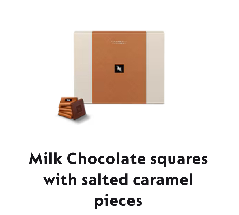 شکلات شیری نسپرسو : برند : Nespresso شرکت سازنده : نستله ساخت کشور : سوئیس وزن بسته بندی : 200 گرم وزن هر شکلات : 5 گرم تعداد شکلات : 40 عدد شکلات شیری مربعی شکل